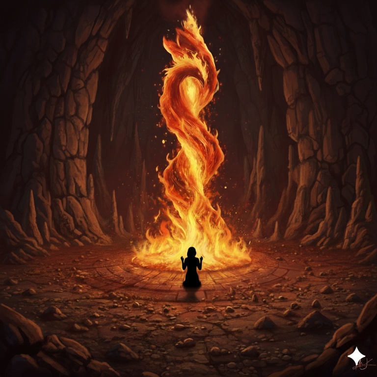 Bevor sie endgültig verschwanden ließen sie eine Art Feuersäule mitten in der Kaverne zurück die danach als übrig gebliebene Reliquie verehrt wurde. Nach einer Messe geschah es das einer der Priester aus ungeklärter Ursache in die Säule stürzte aber zum erstaunen der Anwesenden nicht gleich verbrannte. Das innere der Säule begann sich zu „bewegen“ und durchdrang den darin gefangenen Priester. Aber zu dessen Leidwesen wurde er wohl nicht als angemessen angesehen und vollkommen verbrannt.